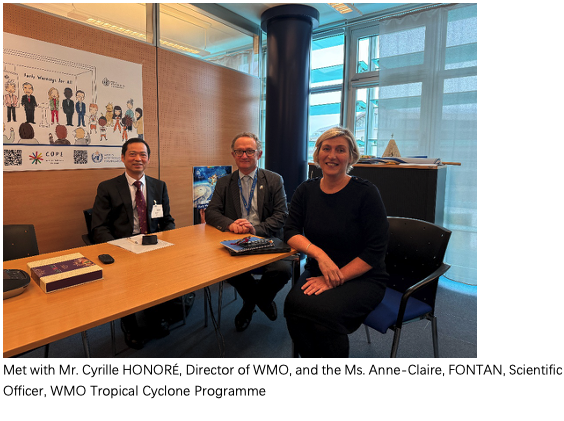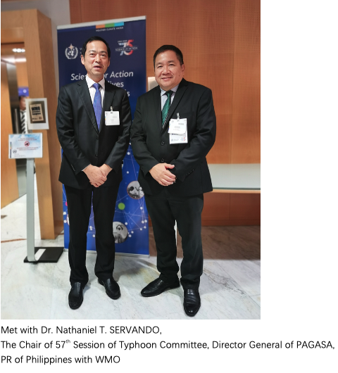 Dr. Duan also held productive discussions with Mr. Honoré and Ms. Anne-Claire, WMO Liaison Officer for the Typhoon Committee, on specific areas of collaboration, and met with Dr. Nathaniel T. Servando, Chair of the 57th Session of the Typhoon Committee and Director-General of PAGASA.
